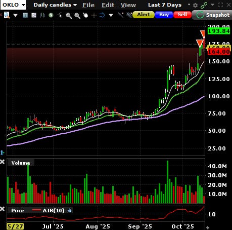 Same principle applies to my RGTI & OKLO swings which I’ve nursed for a while. Had booked some nice profits on OKLO on the last leg, held a small trailer and added back this week and earlier today.